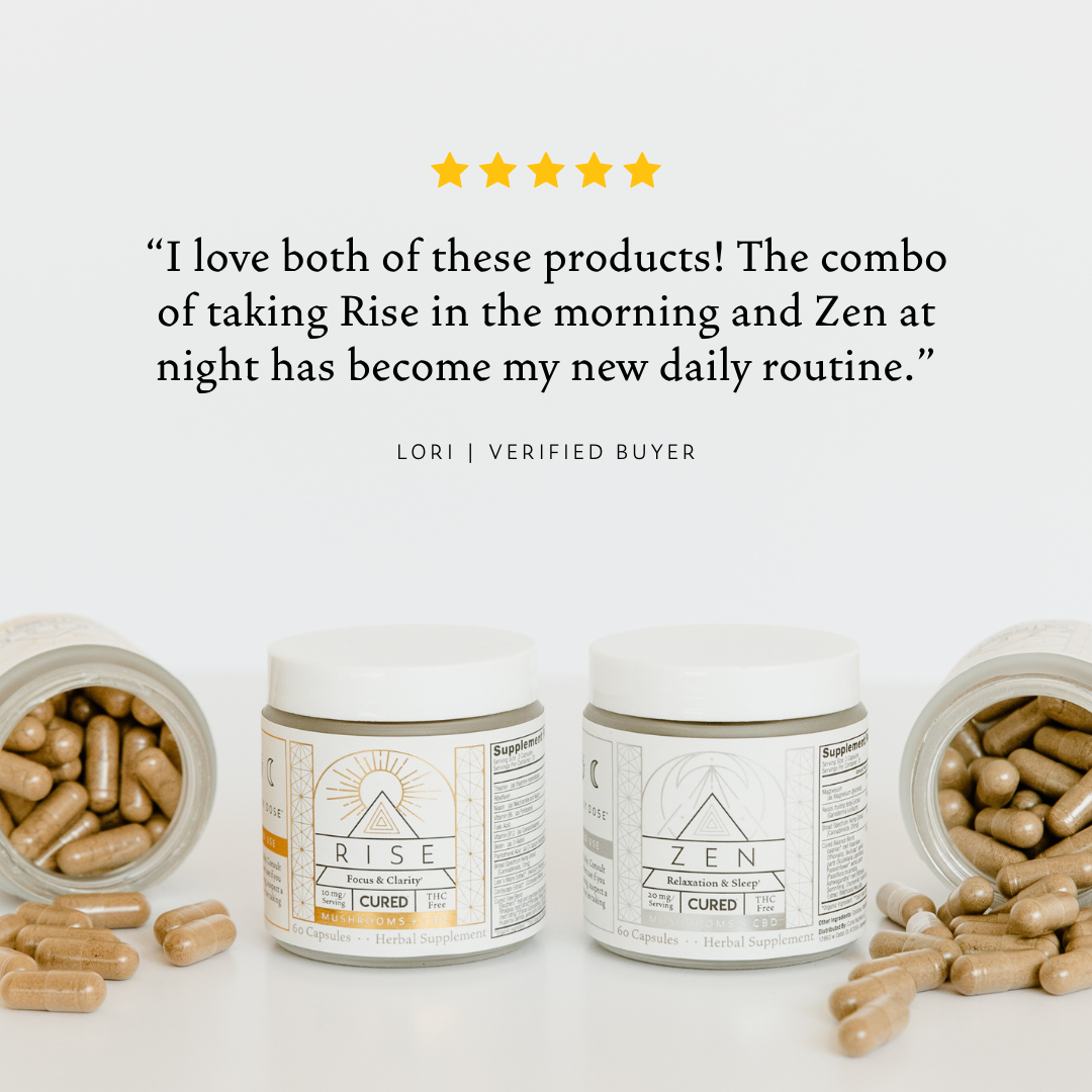 I'm a mom of 2 toddlers. The rise helped save my mood throughout the day and the zen helps my sleep quality. Great combo. I feel well rested and more level headed throughout the day.